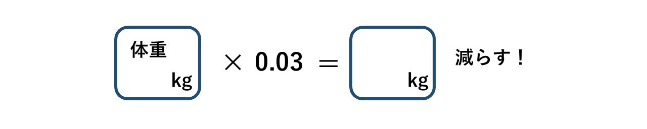 体重65㎏の3%は1.95㎏、75㎏は2.25㎏、85㎏は2.55㎏です。