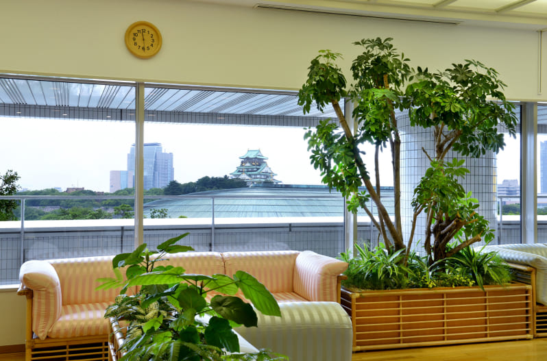 大阪城を臨む豊かな景観を、グリーンで溢れた癒しの空間からお愉しみいただけます。